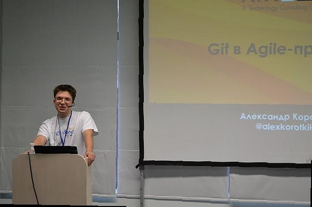 На першу доповідь я пішов до Андрія Бібічеву. Мені дуже сподобалася манера доповіді та манера подачі інформації Андрія. Андрій розповідав про те як і навіщо писати поведінкові тести і чим вони відрізняються від юніт та інтеграційних тестів. При цьому під час доповіді було багато прикладів коду з поясненням, що, навіщо, чому і як. Сильно мене здивувала указка, якою користувався Андрій, вона отрісовиваєт поверх презентації конус-вказівник і дозволяла виділяти підсвічуванням області на доповіді, при найближчому розгляд це виявився контролер від приставки Nintendo Wii, з додатковим самописні софтом на ноутбуці. Хочу себе організувати таку ж указку до наступного виступу.
